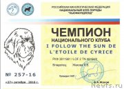 Титулы:JCH RUS, CH RUS, CH RKF, CH CLUB, Producer CH
