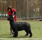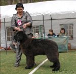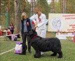 Заводчик: King of Helluland Владелец: Панюшкина И. А. отлично - 1, CW, КЧК Описание: очень хороший тип, массивный кобель, хорошее выражение и голова, маленькие уши и темные глаза, хорошая морда, хорошая передняя часть и костяк, отличный корпус, хорошая линия спины, правильные движения, очень хорошая шерсть. 5-й Лучший кобель черного окраса.