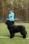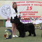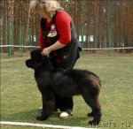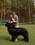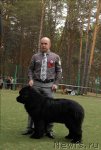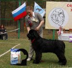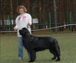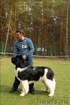 Заводчик и владелец: Воронко А. Г. отлично - 1, CW, КЧК Описание: Очень хороший размер, очень хорошая голова, сильная морда, маленькие глаза хорошей формы, отличные ноги и костяк, несколько узковата передняя часть, хорошая линия спины, хороший корпус, очень хорошие движения, правильный хвост хорошая шерсть. 2-й Лучший кобель черного окраса.