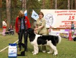 Заводчик: Sonia & Vladislav Krackovci, Словакия Владелец: Александров В. Б. отлично - 2, СС Описание: Хороший тип, среднего размера, правильные глаза и уши, приемлемый прикус, отличные лапы и костяк, отличный корпус и грудная клетка, хорошая линия спины, очень хорошие углы ЗК, правильные движения, правильная шерсть и хвост.