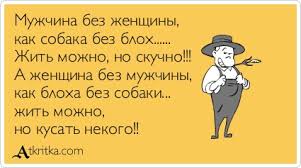 * * * В женском языке есть универсальное слово. «Эта штучка» может означать что угодно, независимо от размера и области применения. * * * Жена, уезжая на дачу, оставляет на столе записку «Коля, ключи у соседки». Выходит, запиpает двеpь, отдает ключи соседке и уезжает… * * * Женщина — это единственная загадка, которую мужчине не только не удастся разгадать, но для его же блага — лучше и не разгадывать… * * * Совеpшенно непонятно, почемy женщины любят кошек. Кошки сyщества независимые, они не слyшаются, не идyт, когда их зовyт, любят шляться по ночам, потом пpиходят, чтобы быть накоpмленными и обласкаными. Потом они хотят, чтобы их оставили в покое, чтобы поспать. Дpyгими словами: в кошках женщины почемy-то любят то, что ненавидят в мyжчинах… * * * Приходит в казино женщина, играет в рулетку. Ставит фишки на число «22». На это число выпадает выигрыш. Она с невозмутимым видом ставит все выигранные фишки опять на число «22». На что крупье вежливо ей замечает: — Мадам, вероятность Вашего следующего выигрыша невероятно мала — может все-таки поставите фишки и на другие числа, поверьте моему опыту! Женщина,улыбаясь отвечает: — Ничего, у меня своя система игры. Выигрыш опять выпадает на число «22». Все в изумлении! — Расскажите, в чем состоит Ваша система? — Все очень просто!Я приехала в Ваш город 7 числа, поселили меня в комнате под номером 7, приехала я в вагоне под номером 7… — Ну?! — не понимая восклицает директор. — Что — ну, трижды семь — двадцать два!!! * * * — Вы не можете даже представить, как мне трудно, — жалуется пациент психиатру. — Моя жена задает мне вопрос, потом сама на него отвечает, а потом начинает объяснять мне, почему я ответил неправильно! * * * Сегодня подходит девушка ко мне и говорит: «Давай поцелуемся, а то давно не виделись». Спрашиваю: «Хочешь царевной стать?», — и получаю по морде. Резонно переспрашиваю: «Hе хочешь?», — и получаю снова по морде. Решив, что морда лица своего дороже — целую. И? И получаю по морде с мотивировкой «в щёчку». * * * Фраза «Делай что хочешь» в переводе с женского означает: «Если ты сейчас не сделаешь так, как я сказала, ты умрешь». * * * — Дорогая, где чай? Я никак не могу его найти. — Ах, какой ты беспомощный! Чай в аптечке, в банке из—под какао с наклейкой «соль»! Если провести обыски разом у всех российских губернаторов, то мы за один день выйдем из кризиса и еще лет двести туда не попадем.