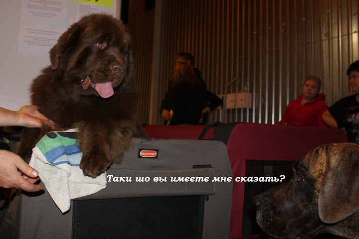 И тем не менее, хочу Поздравить - Воронко Анастасию, владельца собаки ![]() Skippers Ultimate Object, которая доверила мне его.Настя, мы с Тимошей выполнили программу минимум. Ему остался один CACIB и он Интерчемпион, а пока вчера, закрыли Чемпиона седьмой страны, правда пару титулов еще в оформлении, но тем немее, можете спокойно выражаться народу, писать в каталогах и родословных детей – MiltiCH!!! С чем Вас и ПОЗДРАВЛЯЮ!!! И конечно СПАСИБО всем друзьям сопородникам – Беларуси, России, Украины, Молдовы, Эстонии. Которые просто поддерживали морально, и особенно тех, которые явились к нам на помощь, по первому нашему телефонному звонку, не оставив нас ночью в чужой стране, на пустой дороге, с проваленным сцеплением. Ребята Вы действительно достойны своих собак - ПОРОДЫ НЬЮФАУНДЛЕНД!!! Надежда,нет разницы 7 титулов или один титул,у всех любовь и труды!Все стараются и переживают,проигравшие или победители. Причём тут понты?